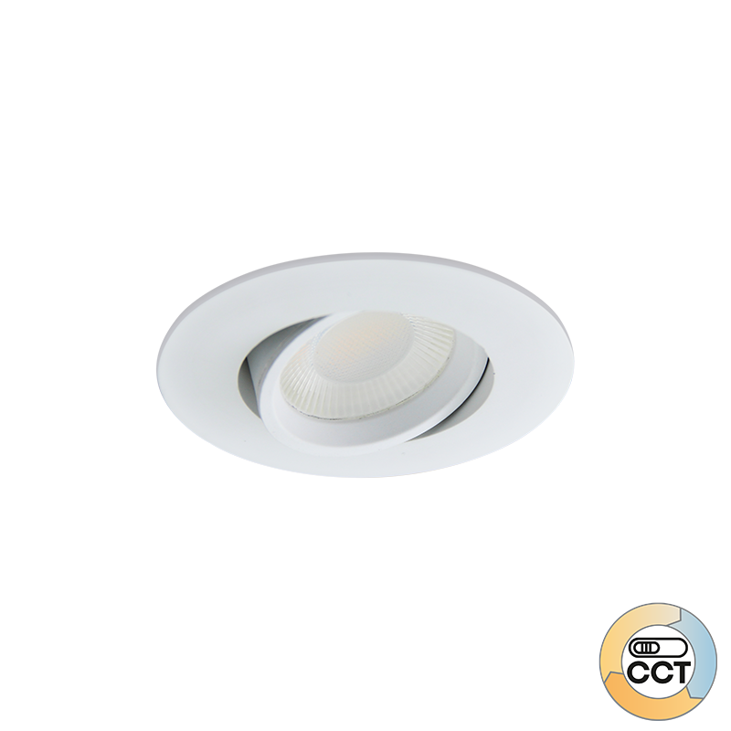 Spot décoratif, encastré, rond, bidirectionnel. Couleur d'éclairage facilement modifiable par le biais d'un switch intégré dans le luminaire (2700-3200-4000K). Equipé de lentille de diffusion pour un éclairage uniforme. Collerette de diamètre 90mm en matière plastique afin de garantir la bonne tenue dans le temps dans les environnements corrosifs (ex: milieux salins). Fixation dans les plafonds suspendus à l'aide de deux ressorts. Alimentation électronique intégrée. Connecteur rapide à repiquage déporté du luminaire.